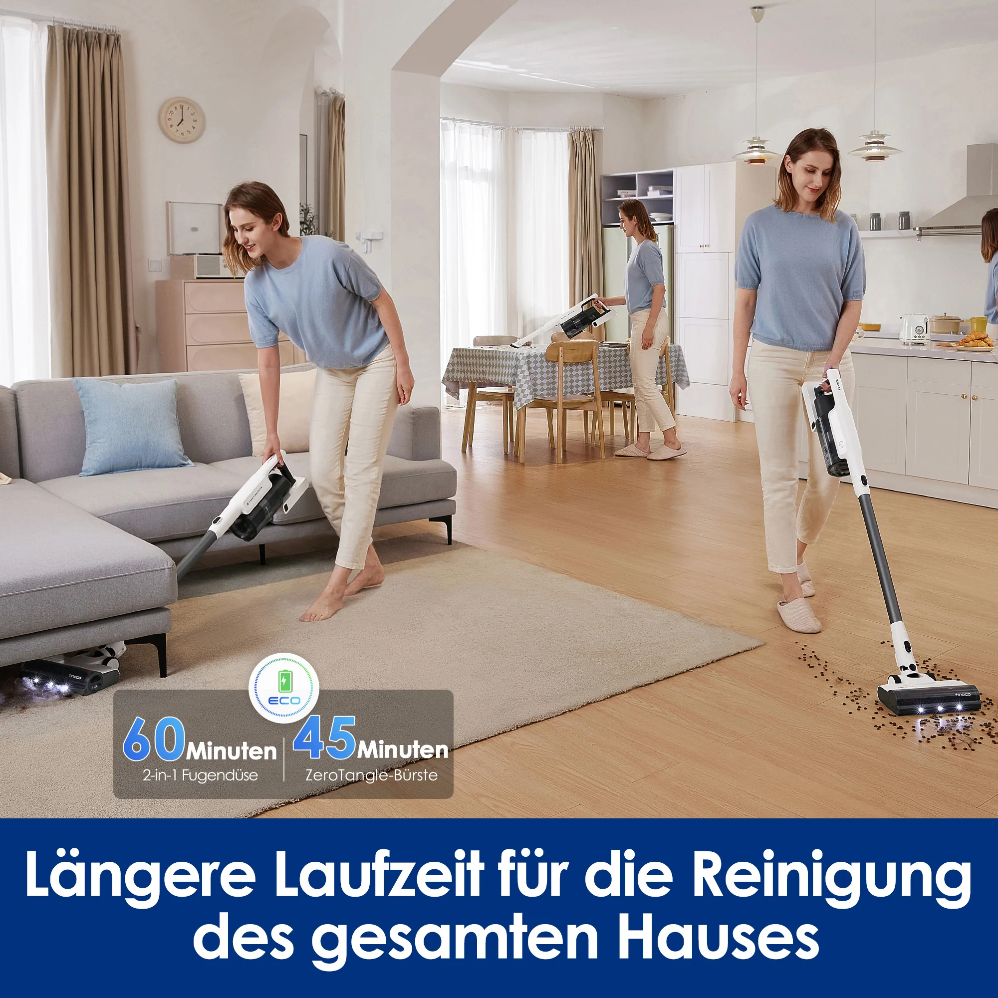 Bis zu 60 Minuten Laufzeit: Mit einer beeindruckenden kabellosen Laufzeit von bis zu 60 Minuten* kannst du mit einer einzigen Ladung das ganze Haus reinigen.